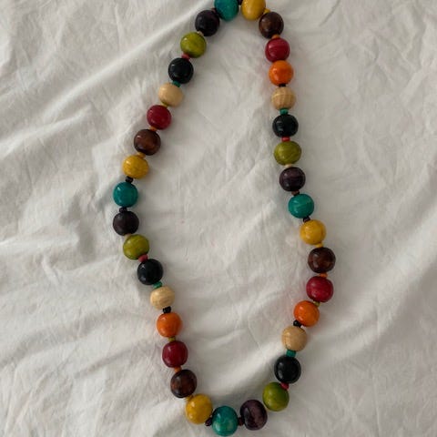 Kaulakoru pienistä värikkäistä puuhelmistä