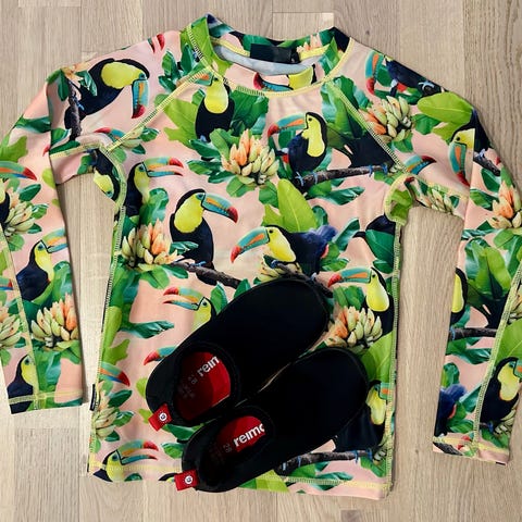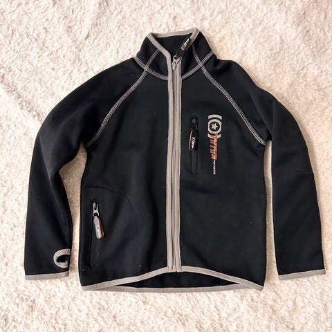 Myydään yhdellä lapsella käytössä olleet Molo Haven ulkoiluhousut koossa 110. Lahkeissa, sauman kohdalta pari reikää (ks. kuvat). Kangas on myös pehmentynyt polvista. Mahdollista tehdä korjauksia mukana tulleella kankaalla. Jalkalenkit löytyy myös vaikka kuvassa ei näy. Ne ovat käyttämättömät.