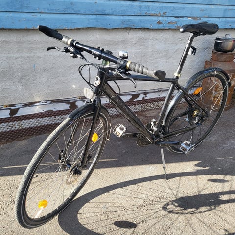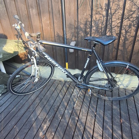 Parhaat päivänsä nähnyt, etujousitettu naisten hybridi. Laittoa piisaa vaikka miten paljon. Toisessa kumissa sentään ilma pysyy :) Tee tarjous ja kunnosta tästä itsellesi menopeli.