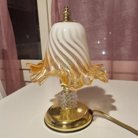 Kuvaus:Myydään erittäin siistikuntoinen ja tunnelmallinen vintage-pöytävalaisin. Valaisimessa on valkoinen, opaali-lasinen kupu, jota koristaa herkkä sininen kukkakuviointi. Valaisimen jalka on tyylikästä valkoista keramiikkaa/posliinia sinisillä yksityiskohdilla.Malli muistuttaa klassista öljylamppua ja sopii loistavasti esimerkiksi yöpöydälle tai tunnelmavaloksi olohuoneeseen.