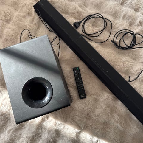 Yamaha YSP-5100 soundbar ja subwoofer. Väri musta. Soundbarissa useita etupaneelin kaiutinelementtejä ja metalliritilä, taustassa valmistajamerkinnät ja malli. Mukana erillinen subwoofer ja virtajohdot. Laitteessa painikkeet äänenvoimakkuudelle ja lähteen valinnalle. Soveltuu television äänen toistoon ja kotikäyttöön elokuvien, musiikin ja muun äänen kuunteluun. Huom! UK pistoke, mutta toimii hyvin adapterilla.