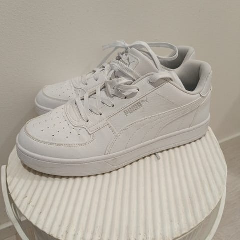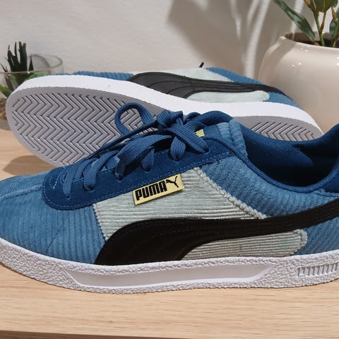 Puma tennarit, koko 47. Väriltään mustat, valkoisella pohjalla ja sivuraidalla. Nauhakiinnitys. Sopivat arkikäyttöön ja vapaa-aikaan. Oikean kengän pohja on puhjennut.