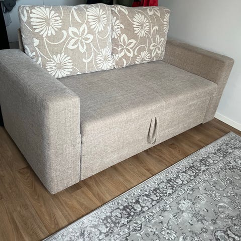 Myydään käytännöllinen laverivuodesohva pehmusteineen.