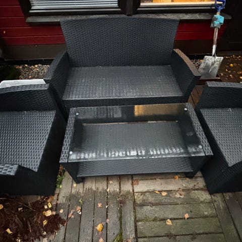 Jatkettavapöytä + tuoleja 4-6kpl. Kaipaisi maalia muuten ehjä.