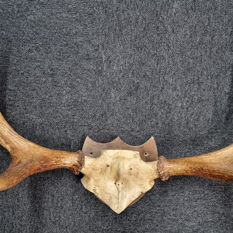Trofee, hirvensarvet seinälevyllä ja ruuvit mukaan, kallo ja sarvet.