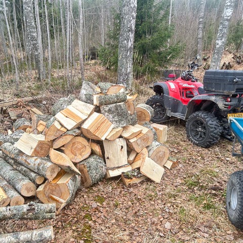 Kaadettu syksy 2024 ja halkaistu kevät 2025. Ollut ulkona katoksen alla