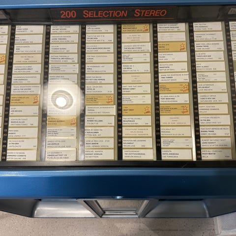 AMI Jukeboxi hakee uutta omistajaa tilajärjestelyjen takia. Laite on peräisin jostain 1990-luvulta ja pitää sisällään viimeisen kaupallisessa käytössä olleen levykokoelman (100 levyä). Levyluettelossa valintapaneelissa ovat alkuperäiset nimikelaput. Laitteessa on 200 valinnan stereo-järjestelmä (eli 100 levyä), ja se toistaa 45 kierroksen vinyylilevyjä. Laitetta ei ole käytetty vajaaseen kymmeneen vuoteen, mutta aikanaan jäänyt toimivana varastoonsa. Todennäköisesti vaatii mekaniikan puhdistamista, jotta valinnat osuvat kohdalleen. Laitetta on käytetty vahvistimena soitettaessa musiikkia ulkoiselta soittimelta, tätä varten siihen on rakennettu ulkoinen ääniliitäntä.