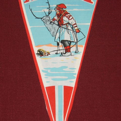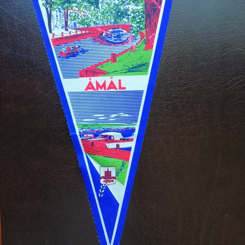 Ruotsin Pajalan matkailuviirin. Leveys ylhäältä 17 cm ja pituus noin 32.5 cm.