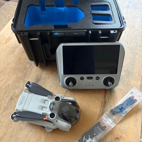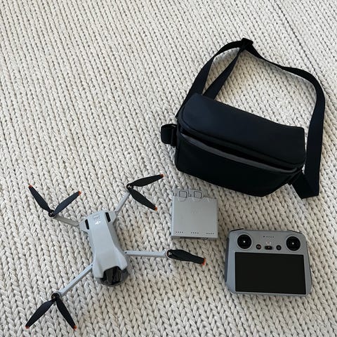 DJI Mini 3 Pro + Fly More (yht. 3 akkua) + varapropellit + 2 kantolaukkua.