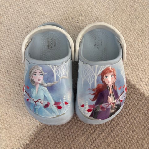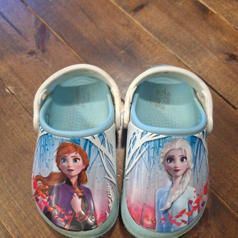 Hyväkuntoiset, vähän käytetyt pinkit Frozen-”crocsit”. Vain nouto Ruskeasannasta tai Tuusulan Hyrylästä.