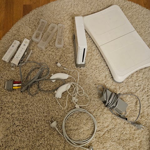 Nintendo Wii pelikonsoli lisävarusteilla ja tasapainolauta