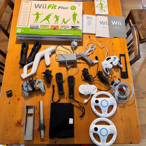 Nintendo Wii pelikonsoli. Mukana useita lisävarusteita, kuten Wii Balance Board -tasapainolauta, ohjaimia rannekkeineen, rattiohjaimia, sensoripalkki sekä johtoja ja telakka. Pakettiin sisältyy myös Shaun White Snowboarding World Stage -peli. Kokonaisuus soveltuu Nintendo Wii -peleille, jotka tukevat mukana olevia ohjaimia ja tasapainolautaa.