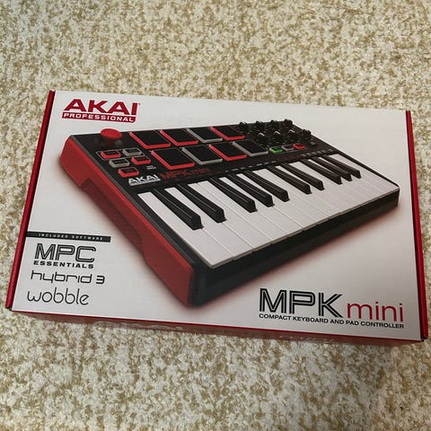 Akai MPK Mini MIDI-koskettimisto. Kompaktissa ohjaimessa on pienikokoiset koskettimet, rumpupädit, säätönupit ja ohjauspainikkeet. Laitteessa on USB-liitäntä, ja se soveltuu MIDI-ohjaimeksi musiikinteko- ja äänitysohjelmiin tietokoneella. Väri on musta, mukana tulee USB-kaapeli.