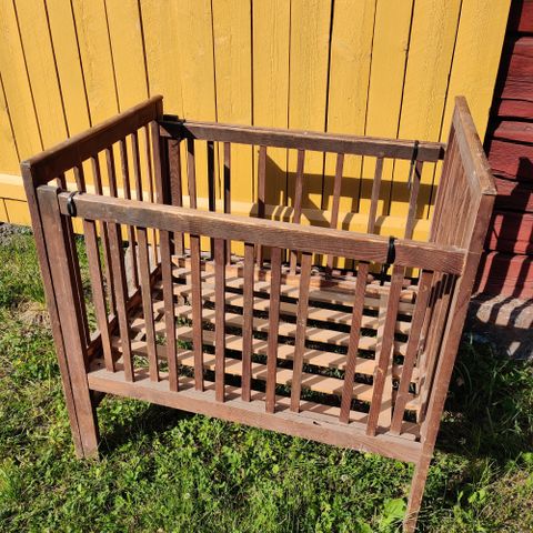 Vetämällä jatkettava pinnasänky 1960-luvulla. Maali on paikoittain lohjennut joka anta sängylle koristeellista patinaa. Toki entisöimällä ja uudella maalilla saat oman näköisen.