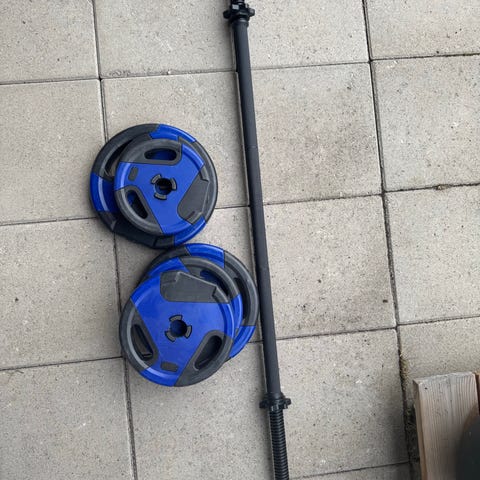 Levypainot 2x10kg, 2x8kg, 2x6kg, 2x4kg ja 2x2kg.