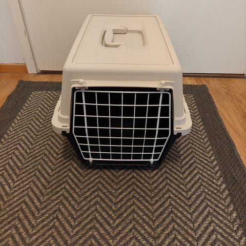 Tukeva ja kestävä muovinen kantolaatikko lemmikeille. Ehjä ja siisti.