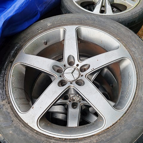 4kpl vanteita, ollut ml mersun alla+ 5 kpl renkaita joista 2 kpl uusia, muissa pintaa n. 5-6mm.