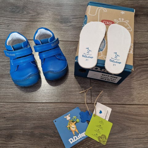 D.D.Step nahkaiset vk-kengät. Koko 21. Käytettynä ostettu, itsellä yhden syksyn käytössä olleet. Toisesta kengästä puuttuu toinen kissankorva. Likaa löytyy.