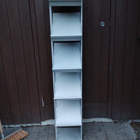 Läpinäkyvä akryylista valmistettu esiteteline. Useita päällekkäisiä lokeroita lehdille, esitteille tai muille painotuotteille. Soveltuu esimerkiksi toimistoon, odotustilaan tai kotiin lehtien ja esitteiden säilytykseen ja esillepanoon. Kork. 180cm. Löytyy 2 kpl, kappalehinta 40 eur