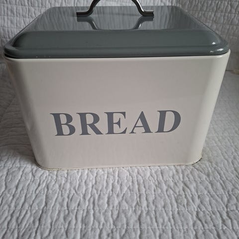 Myydään kaunis, valkoinen peltinen leipälaatikko klassisella sinisellä koristekuviolla. Rullakansi toimii sujuvasti. Täydellinen lisä maalaisromanttiseen keittiöön tai tuomaan retroa tunnelmaa sisustukseen.