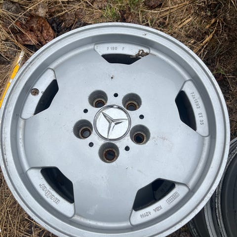 Mersun 90 luvun S- ja SL-mallien alkuperäisiä jäljittelevät vanteet. 7x15 koossa. Ehjät, suorat ja ihan suhteellisen siistit. Vanhoja jarrupölyjä ja nivelrasvoja saa vähän rapsutella, mutta vanteet kuitenkin äsken pesty painepesurilla.
