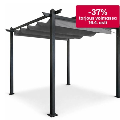 Rakenteessa on selkänojallinen penkki ja yläpuolinen kattoristikko sekä sivuilla säleikkömäiset päädyt, joita voi käyttää esimerkiksi köynnöskasveille. Sopii terassille, pihalle tai puutarhaan istuin- ja oleskelupaikaksi.