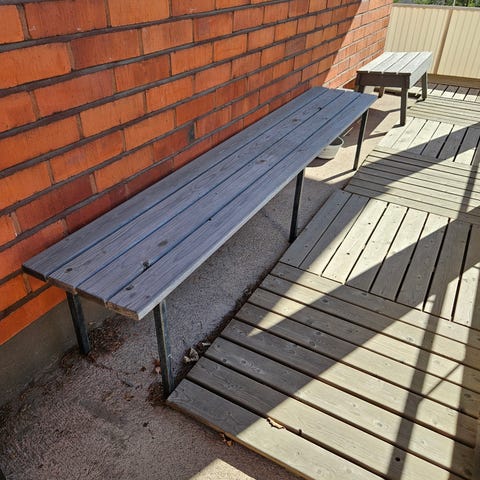Vaatii puhdistuksen talven pölystä sekä uusi maalipinta ei myöskään olisi pahitteeksi.