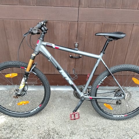 SCOTT, 24-tuumainen maastopyörä levyjarruilla; pyörä on kevyttä alumiinia ja erittäin hyvä.