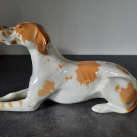 Koristeeksi sievä posliinikoira Japanista ainakin pohjassa lukee Japan täysin ehyt korkeus 15.5cm leveys 6cm
