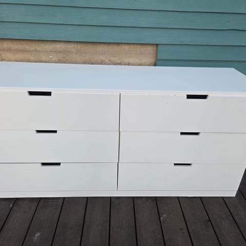 Myydään siisti Ikean lipasto, jossa kolme isompaa vetolaatikkoa, yksi pienempi. Kansilevyyn tullut pieni kynsilakan tahra ja toiseksi ylimmäisessä laatikossa pohjassa pieni jälki.