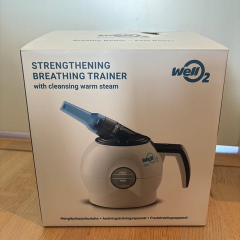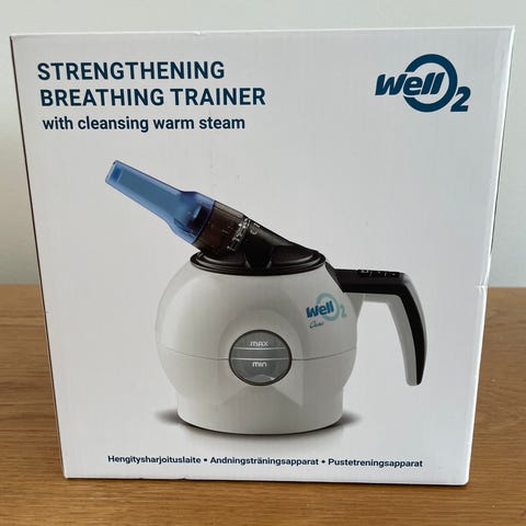 Kaksi kertaa käytetty Hengitysharjoituslaite WellO2 Care, ei löydy alkuperäistä laatikkoa.