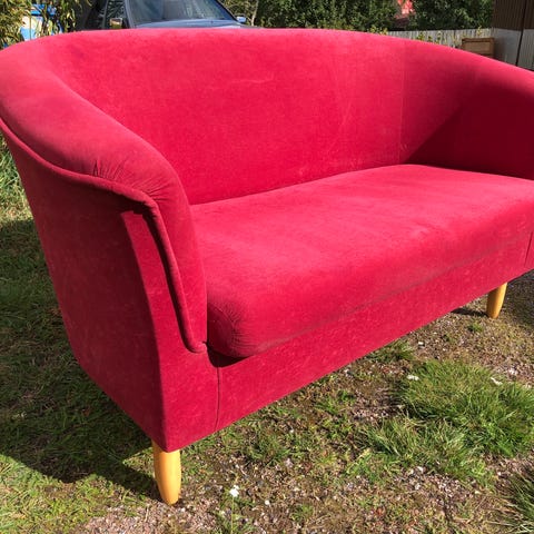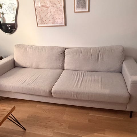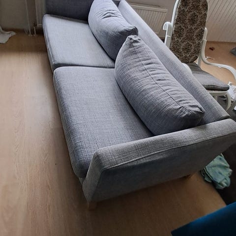 Annetaan kuvan sohva pois muuton alta. On hyvässä kunnossa. Huom! Kokotiedot ovat suuntaa antavia, mittanauha kadoksissa.