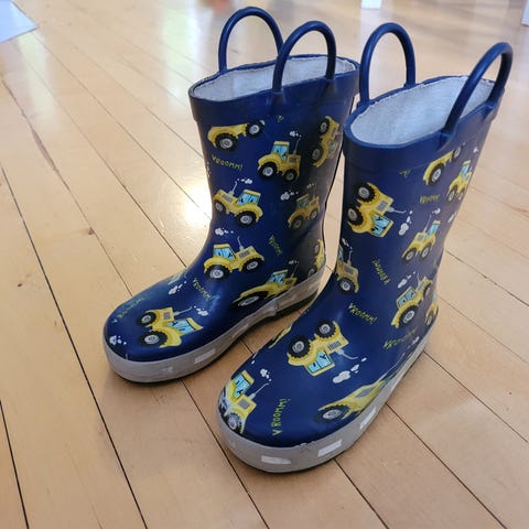 Myydään kumisaappaat vilkkuvilla valoilla, koko 26/27. Pohjallisen pituus 17,8cm.