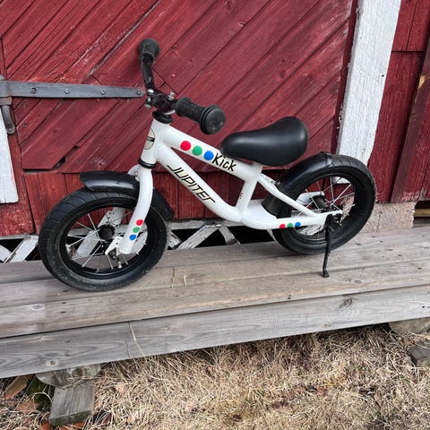 Frog Tadpole lasten potkupyörä, jossa 12" renkaat. Runkoväri punainen, satula ja kahvat mustat. Pyörässä on käsijarru takapyörälle ja matala runko helpottamaan kyytiin nousua. Soveltuu pienille lapsille tasapainopyöräksi ajotaidon harjoitteluun.