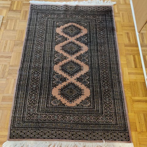 Mustavalkoinen villamatto 151 cm x 217 cm. Hyvä käytetty kunto.