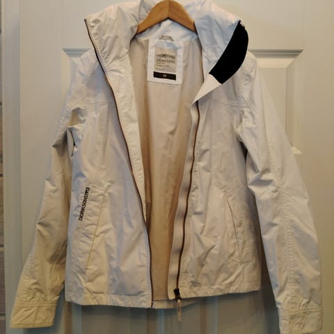 Didriksons naisten ulkoilutakki, koko 40. Turkoosi kuoritakki, jossa säädettävä huppu ja vetoketjulliset taskut edessä sekä hihassa. Takissa verkkovuori yläosassa ja täyspitkä vetoketju edessä. Soveltuu naisten ulkoiluun ja arkipukeutumiseen. Mittoja; kainalo - kainalo 48, olka - helma 55 cm. Hyvässä kunnossa, kestävää laatua. Voin lähettää. Mmm.