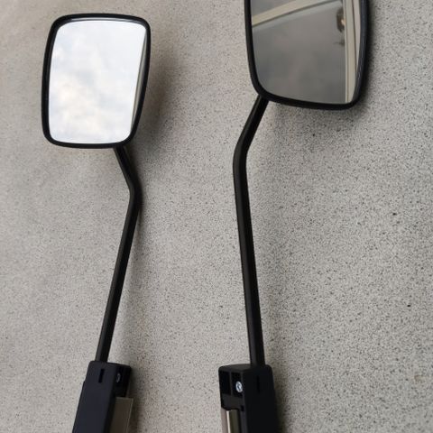 Kuvan peilit myyntiin. Toisen peilin kiinnikkeestä puuttuu kiristimen muovi. Kts kuva. Tämän peilin muovissa naarmuja.