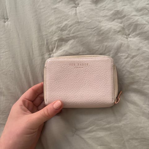 Ted Baker lompakko naisille. Punainen ulkopinta ja vaalea sisäpuoli. Materiaalina muovi. Lompakossa on erillinen kolikkotasku metallisella klipsisuljennalla, useita korttipaikkoja sekä taskuja seteleille ja kuiteille. Pieni ja kompakti malli, joka sopii hyvin käsilaukkuun. 9x12cm