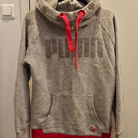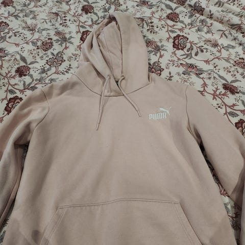 Puma huppari naisille. Koko S. Väri vaaleanpunainen. Materiaalina kangas. Edessä vetoketju ja taskut sekä suuri Puma-logopainatus. Hupullinen malli, sopii arki- ja vapaa-ajan käyttöön.
