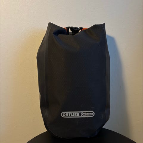 Ortlieb pyörälaukku, väri punainen mustilla reunoilla. Laukussa on takapuolella kiinnitysjärjestelmä tavaratelineeseen. Materiaali on sileäpintainen ja helposti puhdistettava, sopii käyttöön esimerkiksi työmatka- tai retkipyöräilyssä. Laukku suljetaan yläreunasta rullaamalla, mikä auttaa suojaamaan sisältöä roiskeilta ja lialta.