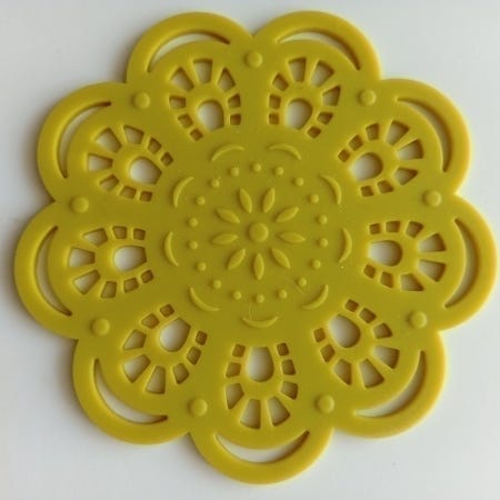 Silikonialusta ruokailuun, pysyy hyvin paikoillaan ruokailleessa ja voi pestä koneessa. Muuten hyväkuntoinen, mutta yhdessä reunassa pientä kulumaa/käytön jälkeä. Koko 39x39