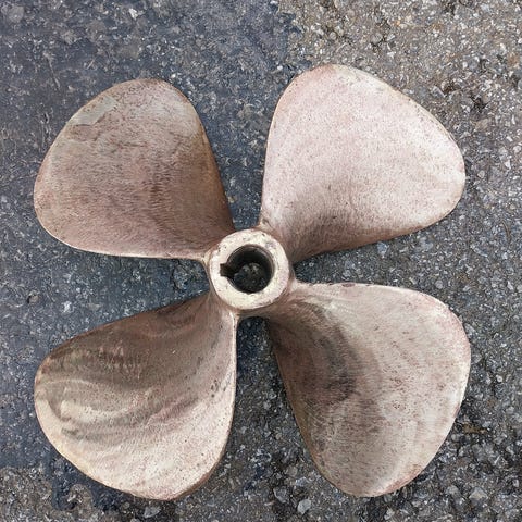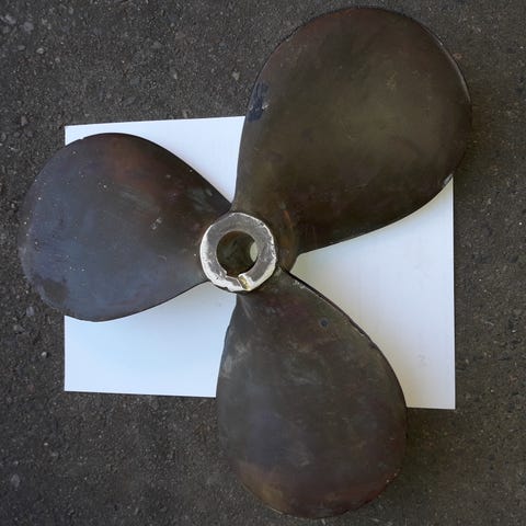 Etumaisen potkurin yhdessä lavassa hieman muodonmuutosta ja joitakin naarmuja.