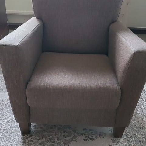 Pohjanmaan kotimainen tumman harmaan värinen nojatuoli. Lev. 90cm, selkänojan kork. 100cm. Siisti ja ehjä, istuintyyny vaihdettu.