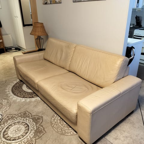 Myydään hyväkuntoinen, kangasverhoiltu Pohjanmaan kalusteen kahdenistuttava Atlanta sohva.