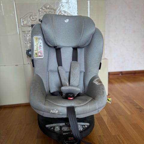 Joie i-spin safe turvaistuin. Kääntyy 180 astetta, jotta lapsi on helppo asettaa istuimeen. Isofix kiinnitys.