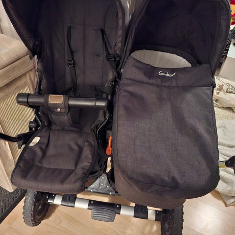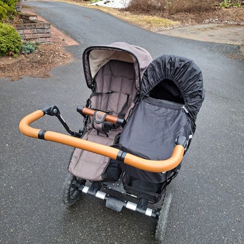 Freestyle twins tuplarattaat kahdelle lapselle. Rattaissa vierekkäin sijoitetut istuinosat, säädettävät selkänojat ja turvavaljaat. Kuvissa näkyy myös lämpöpussit tai pehmeät kantokopat, jotka sopivat rattaiden istuimiin. Runko on metallinen ja siinä on työntöaisa, neljä pyörää ja tavarakori alla. Väri on harmaa tummilla yksityiskohdilla. Soveltuu kahden lapsen kuljettamiseen esimerkiksi arjen matkoilla ja ulkoilussa.
