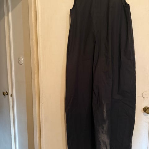 COS naisten hihaton mekko, koko 38. Väri musta. Materiaali puuvillapopliinia, jonka koostumus on 72 % puuvillaa, 25 % polyamidia ja 3 % elastaania.