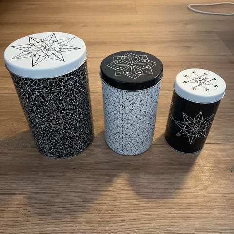 Martinex säilytyspurkki, jossa irrotettava puukansi. Valkoinen keraaminen purkki, jossa mustia ristejä koristekuviona. Pohjassa Martinex-merkintä ja tieto, että astia kestää konepesun ja mikroaaltouunin (kansi ei välttämättä sovellu mikroaaltouuniin). Soveltuu esimerkiksi kuiva-aineiden tai pienten keittiötarvikkeiden säilytykseen. Ø 9 cm ja korkeus kannen kanssa 6,5 cm. Nouto tai Toridiili.