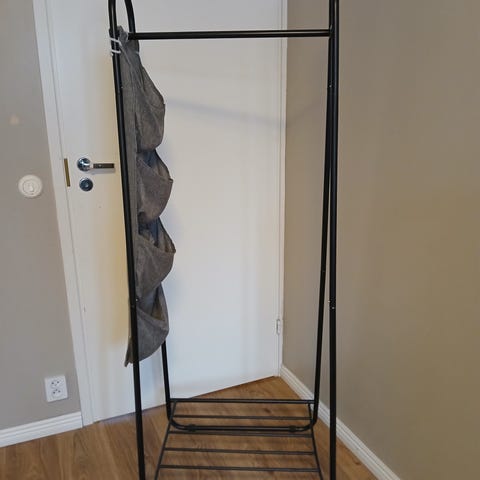 Myyntiin vaatenaulakko kenkätelineellä. Istuinosan etureuna alkanut vähän repsottaa, muutoin siistissä kunnossa.