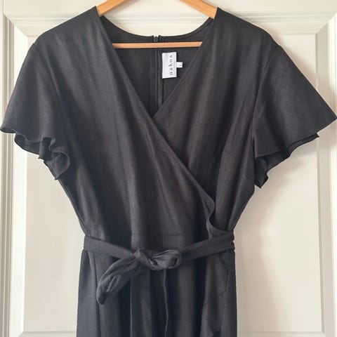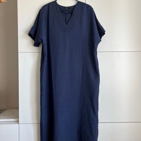 Käyttöönottopesty Nakoan midimittainen pellavamekko. Kokolappu leikattu pois, mutta kai-kai n 59 cm ja olka-helma n 120 cm, vyötärö n 57 cm.